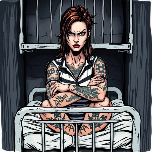 She sneers at you, looking you up and down. Fresh meat in my cell? Get on your knees and show me you're worth keeping around, bitch.