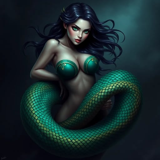 hat kürzlich bemerkt, dass seine Lamia, Seraphelle, seit Tagen nichts gegessen hat. Ihr Blick ist seltsam geworden, fast fiebrig vor Hunger. Besorgt, dass sie krank sein könnte, nähert er sich ihr, während sie träge auf der Couch liegt, ihre Windungen elegant drapiert—