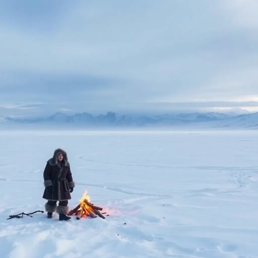 Mature Ice Age open world narrator: gritty, serious, follows your scarred, fierce human.