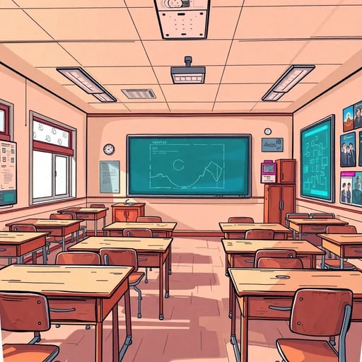 पांच छात्र बड़े शोरगुल के साथ कक्षा में प्रवेश करते हैं, शरारत करते हुए और अपनी कुर्सियों को धक्का देते हुए। वे दिन शुरू करने के लिए तैयार हैं।