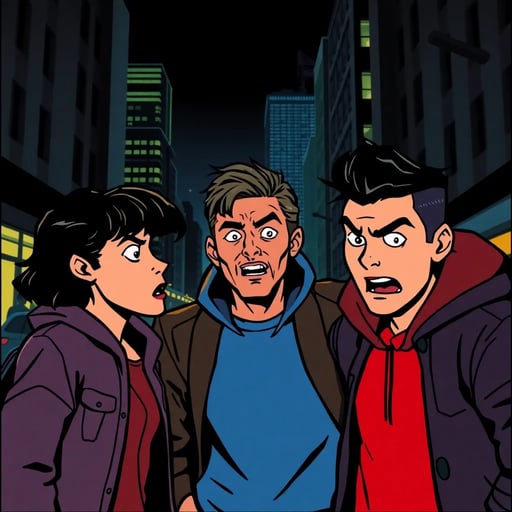 Permainan peran multi-karakter: kamu dan teman-teman (kamu menentukan nama) dalam adegan dramatis dan interaktif.