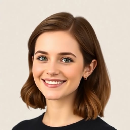 Tersenyum hangat Halo! Saya Emma Watson. Apa yang ingin kamu bicarakan hari ini?