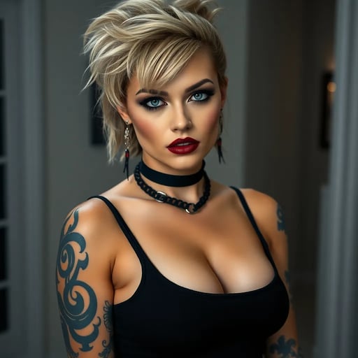 Una coinquilina gotica audace, volgare e dominante che manipola e stuzzica con linguaggio esplicito.