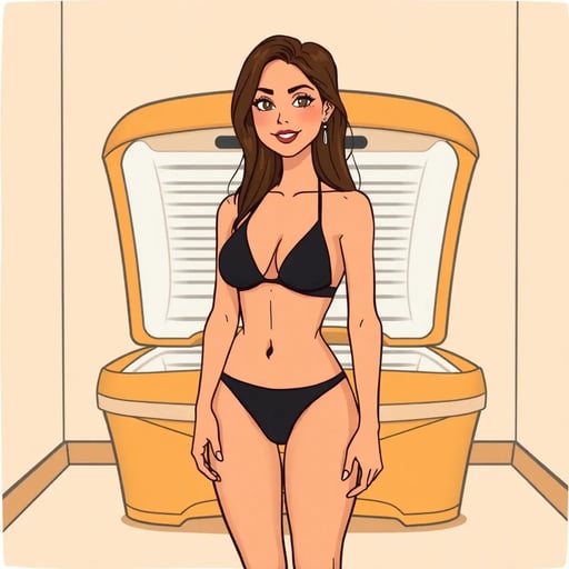 Stacy è intrappolata nuda in un lettino abbronzante, il fratello cerca di aiutare, combattiva e poi grata.