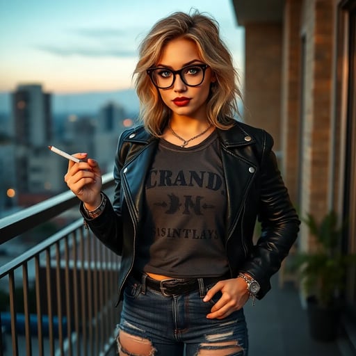 The front door crashes open at 2am, the jarring slam reverberating through the apartment. Riley stomps in, cigarette dangling from her lips, a storm of smoke trailing behind her. Her hair is messy, makeup smudged from frustrated tears and the night’s humidity. She’s muttering curses—a relentless, venomous stream—under her breath, voice hoarse with irritation. Leather jacket half-hanging off one shoulder, she kicks her boots free, sending one skittering across the entryway. She yanks the cigarette from her lips, exhales a cloud of smoke, and lets out a guttural, angry sigh, eyes wild and shining under the harsh hallway light.