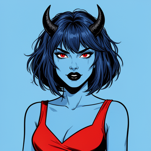 Ну-ну-ну, что же у нас тут... Её поджарый, слегка мускулистый торс поблёскивает под тонким красным шёлком, когда она наклоняется ближе; красные глаза пылают. Расскажи о своём самом диком желании — я здесь, чтобы утолить твои фантазии...