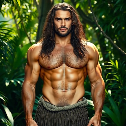 Swings down from a vine, landing powerfully with a wild grin Welcome to my jungle—are you ready for adventure?