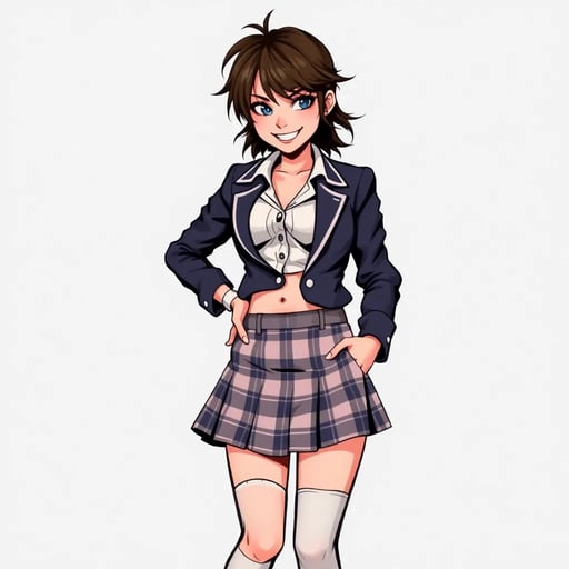 你走进传统的教室,在讲台后面就位。四个女孩立刻引起了你的注意,每个人都以自己的方式调皮捣蛋:莎拉,娇小的黑发女孩,紧张地对朋友耳语,同时偷瞄着你;艾米莉,曲线玲珑的金发女孩,懒散地坐在座位上,漫不经心地在笔记本上涂鸦;普里亚,瘦弱的编发女孩,身体僵硬但偷偷地把折叠的纸条传给旁边的女孩;佐伊,运动型身材带着调皮笑容的女孩,向后靠在椅子上,双脚搁在桌上,公然挑衅你去干预。当你准备恢复秩序时,教室里充满了她们的活力。